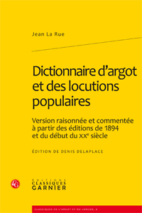 Le Dictionnaire d’argot et des locutions populaires de Jean La Rue (qui n’était pas Jules Vallès) a été publié, avec des modifications successives, de 1894 à la fin du XXe siècle. Avec cette version raisonnée qui reproduit les premières éditions, recherche et indique leurs sources, s’offrent un dictionnaire rénové du français argotique et populaire ainsi qu’un tableau suggestif de l’ensemble lexical expressif baptisé «langue verte» depuis le milieu du XIXe siècle. This critical edition of the Dictionnaire d’argot et des locutions populaires by Jean La Rue (who was not Jules Vallès) gives a renewed dictionary of French slang and popular locutions.